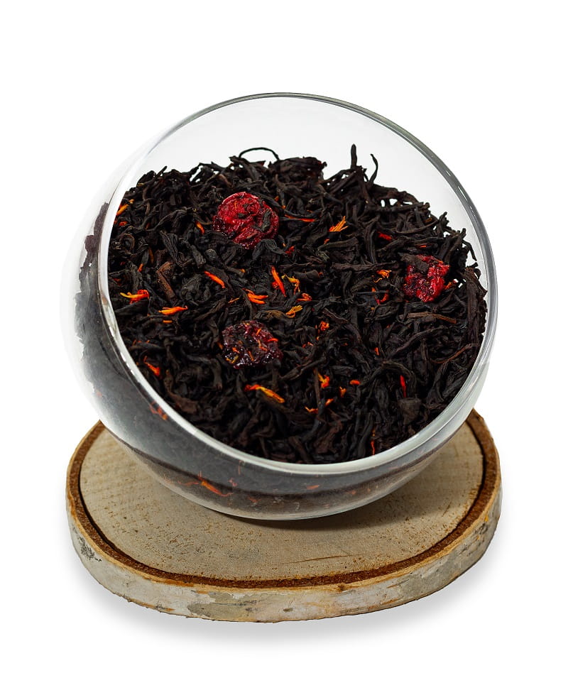 Składniki: czarna herbata liściasta, liofilizowana wiśnia 4%, aromaty, kwiat krokosza.