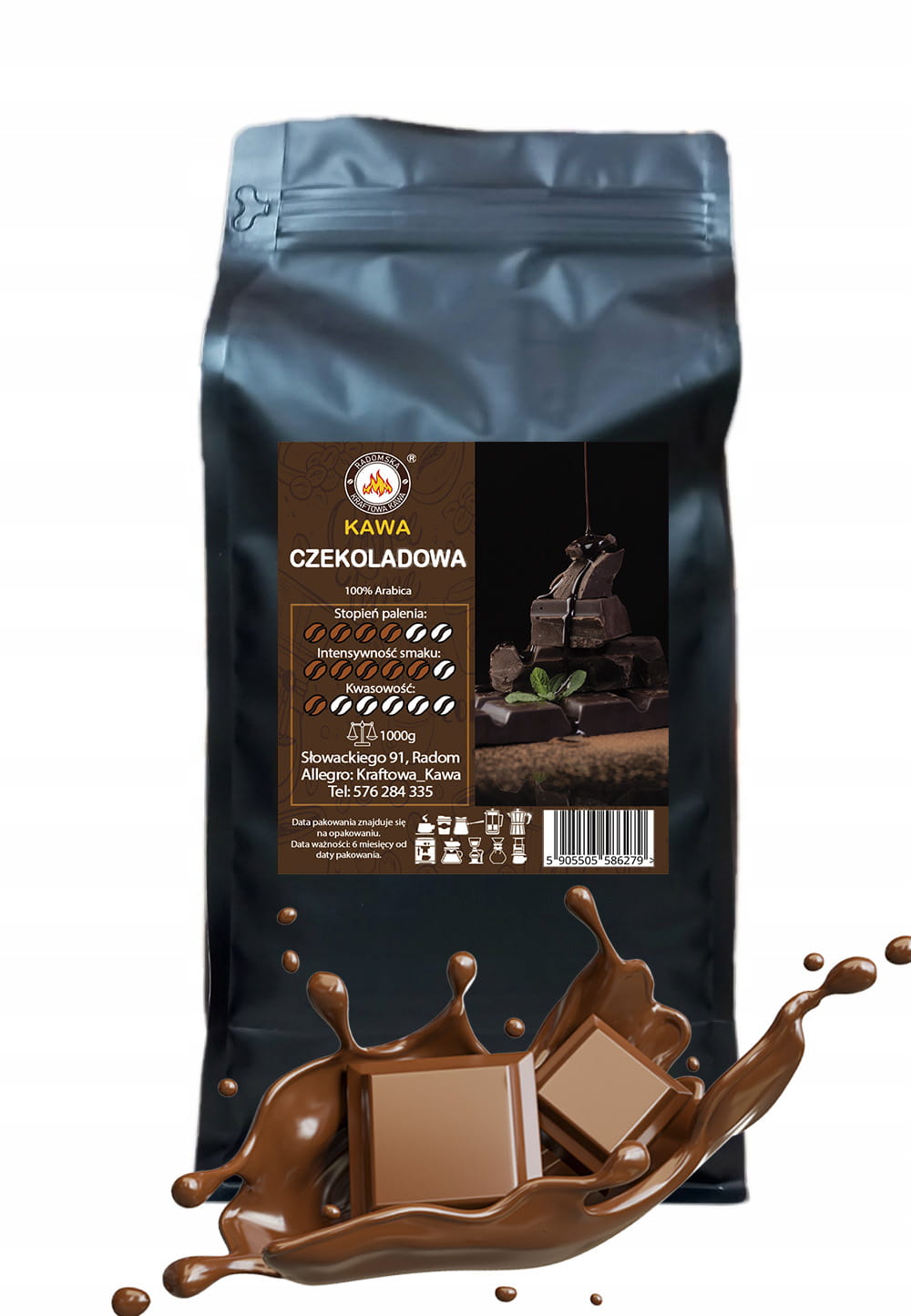 Nasza kawa czekoladowa to połączenie dwóch smaków – świeżo palonej arabiki SANTOS-BRASIL i czekolady mlecznej.