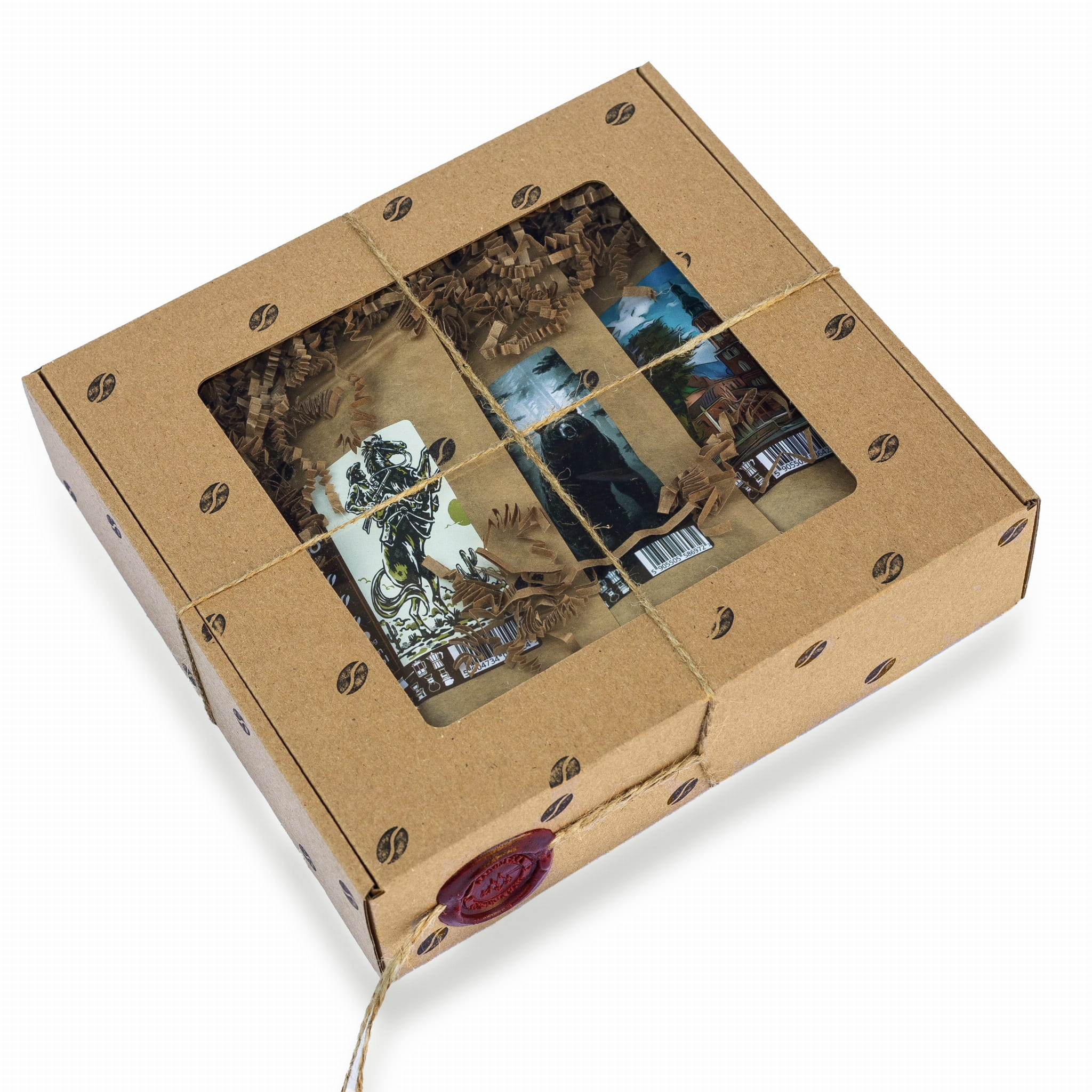 Gotowy zestaw prezentowy składający się z trzech stugramowych kaw dla kawoszy i wielbicieli kawy!