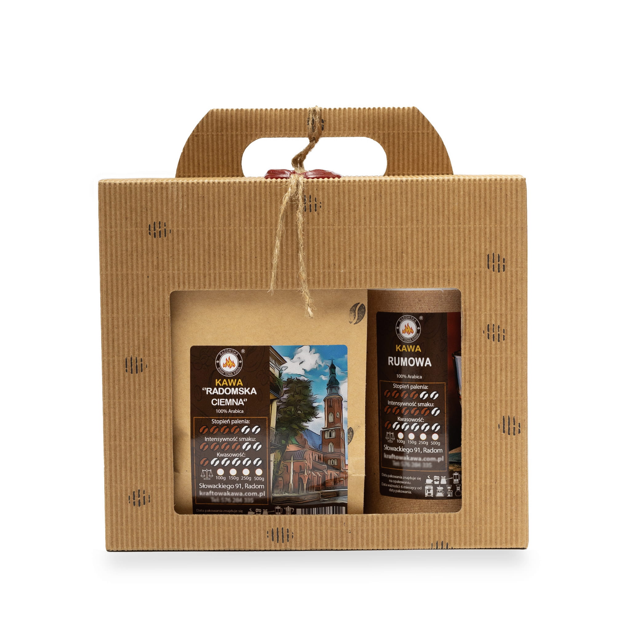 W zestawie 500g kawy ziarnistej klasycznej i 150g kawy smakowej mielonej.