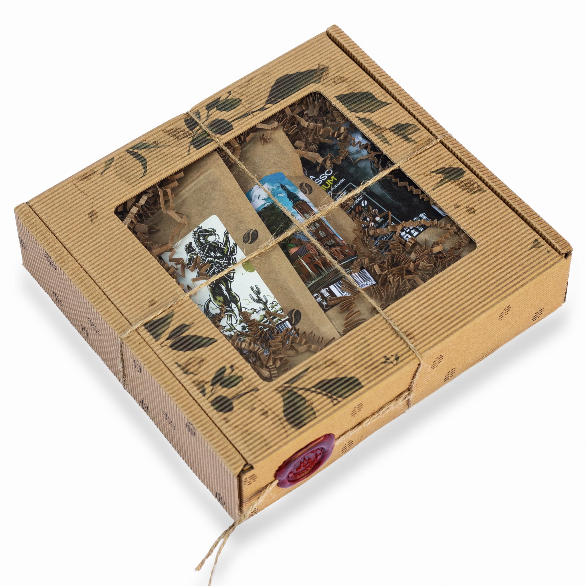 Gotowy zestaw prezentowy składający się z trzech stugramowych kaw dla kawoszy i wielbicieli kawy!